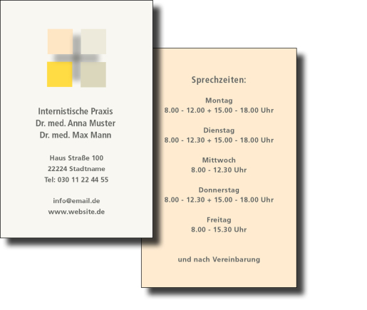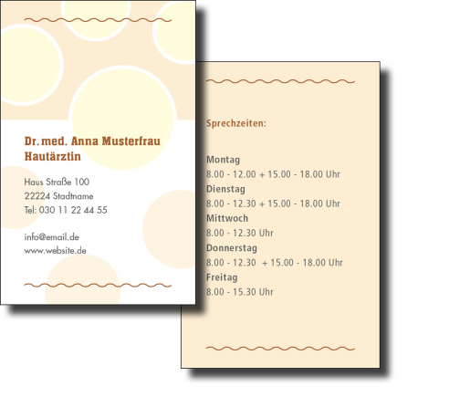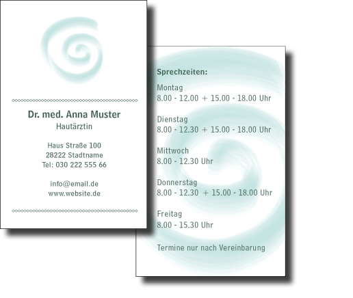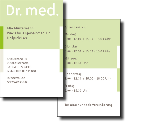 Sie haben Interesse an einen Entwurf? Dann schreiben Sie mir eine Email oder rufen Sie mich an. Anschließend erstelle ich Ihnen ein entsprechendes und unverbindliches Angebot für die ausgewählte Vorlage und die eventuell gewünschten weiteren Produkte. Auch farbliche Änderungen sind dann noch möglich.